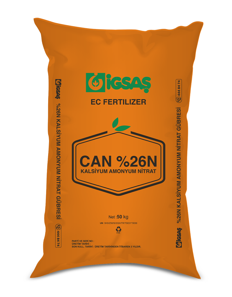 CAN gübresi amonyum ve nitrat formlarında toplam %26 oranında azot içermektedir. Çeltik hariç tüm bitkilerin gübrelenmesinde, bilhassa asidik pH’lı kireçsiz topraklarda kullanılan bir üst gübresidir. CAN gübresi, bir taraftan bitkiye ihtiyaç duyduğu nitratı hazır olarak temin ederken, diğer taraftan amonyum iyonlarının toprak kolloidleri tarafından tutulması ile bitkinin bütün büyüme mevsimi boyunca ihtiyaç duyacağı azotu karşılar.