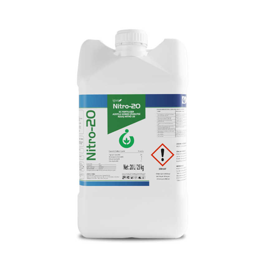 Nitro-20 sıvı gübre olup %20 oranında toplam azot içermektedir. Toplam azot miktarının %4’ü amonyum azotu, %5’i nitrat ve %11’i de üre azotudur. Tüm bitkilere gelişim dönemi başlangıcından ortasına kadarki dönemde damla, yağmurlama, yer altı sızdırma ve center pivot sulamalarla uygun dozlarda toprağa uygulanabilir.